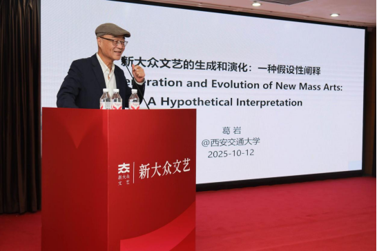 2025年10月12日,首届“新大众文艺前沿理论与实践”学术研讨会在西安交通大学成功举行。“新大众文艺”概念首倡者、新大众文艺研究中心首席专家王军,新大众文艺研究中心学术委员会主任、北京大学中文系教授张颐武,新大众文艺研究中心学术委员会委员、上海交通大学特聘教授葛岩,中国艺术研究院马克思主义文艺理论研究所副研究员王玉玊,腾讯公司副总编辑曾丹,全国大学生广告艺术大赛网络视听部主任钟越,陕西省委政研室文化处处长蔺怀周;中国社会科学院新闻与传播研究所原党委书记方勇;《文化纵横》执行主编陶庆梅、《新闻与传播评论》副主编刘金波、《南京社会科学》副总编虞淑娟、《新闻大学》副主编姜华、《新闻与写作》主编李蕾、《编辑之友》副主编张茂等受邀参加会议。西安交通大学社会科学处处长梅红;西安交通大学新闻与新媒体学院院长汪文斌、党委书记薛周利、二级教授杨琳、领军学者阚平教授等参加本次活动。