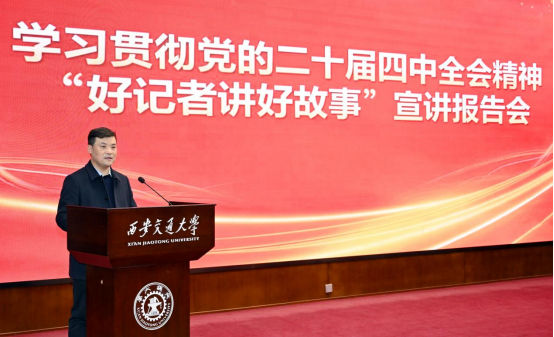 12月17日下午,由陕西省新闻工作者协会主办,新闻与新媒体学院承办的学习贯彻党的二十届四中全会精神“好记者讲好故事”宣讲报告会在西安交通大学隆重举行。陕西省记协秘书长符航震出席活动,新闻与新媒体学院党委书记薛周利致辞,来自新媒体学院、马克思主义学院、崇实书院、城市学院和学生记者团的近300名师生参加报告会,新闻与新媒体学院党委书记薛周利致辞。