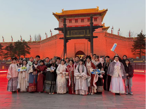 长安十二时辰的仿唐建筑群落中,沉浸式市井表演让创作者们仿佛穿越盛唐;大唐不夜城的灯光秀与仿古建筑光影互动,成为夜间拍摄的绝佳素材。西安饭庄的“三秦套餐”、书院门的春联年味、易俗社的秦腔韵味,每一处场景都成为中外青年捕捉的灵感源泉,在影像中串联起西安的文化根脉与生活温度。