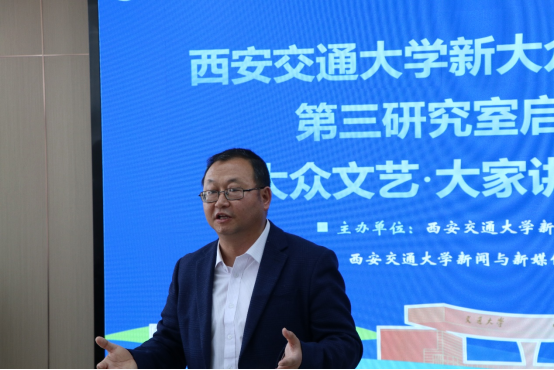 近日,为深入落实国家有关新大众文艺的工作部署,迎接西安交通大学130年校庆暨迁校70周年,深耕人文社科研究高地、推进学科交叉融合发展,西安交通大学新大众文艺研究中心第三研究室启动仪式举行。陕西师范大学学术委员会副主任、文学院二级教授李震,西安交通大学社科处处长梅红教授,人文学院院长李黎明教授,新闻与新媒体学院二级教授杨琳,西安交通大学出版社党委书记、社长李重教授,新大众文艺研究中心第三研究室负责人、人文学院哲学系妥建清教授等出席仪式,人文学院纪梦然书记主持本次活动。校内外专家学者及师生代表100余人齐聚现场,共同见证这一重要学术合作的达成,共享前沿研究成果,共话新时代新大众文艺的理论建构与发展未来,以高水平学术实践为学校校庆献礼,为国家文化战略落地注入交大力量。